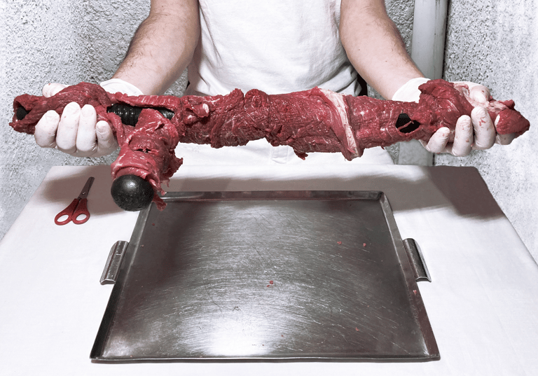 En la tesis planteada por Thomas Hobbes en El leviatán, el Estado solo puede ser eficaz si es temido, sobre esto diría: "Los pactos, sin la espada, son sólo palabras y no tienen fuerza para asegurar a un hombre en absoluto". Estas afirmaciones tienen un eco directo con lo planteado por Camilo Correa de forma siniestra en la serie seRes, del proyecto biopolítica, 2020, que aborda, a través del encuentro casi surreal entre una macana o bolillo, -propio de la indumentaria de la Policía y del ESMAD- y un trozo de carne, los efectos sobre los cuerpos de la represión y la mano dura que puede ejercer un Estado sobre sus ciudadanos.