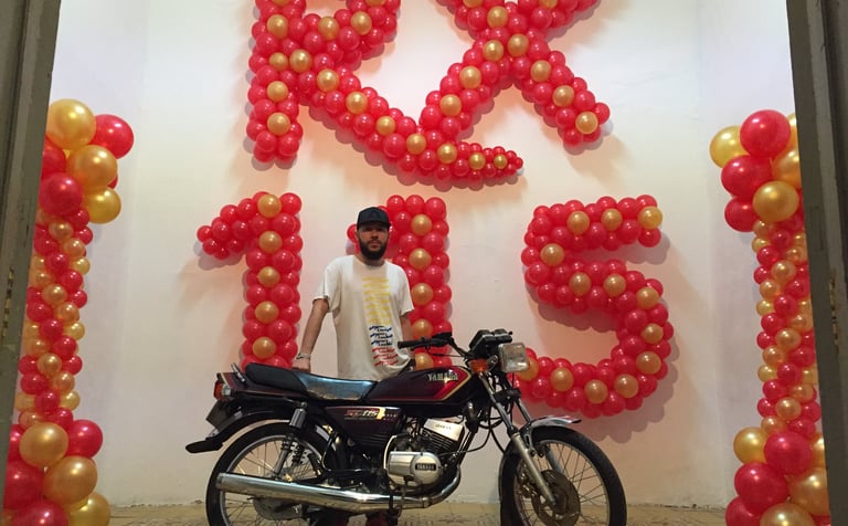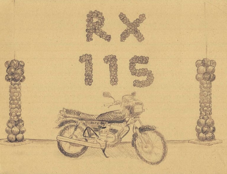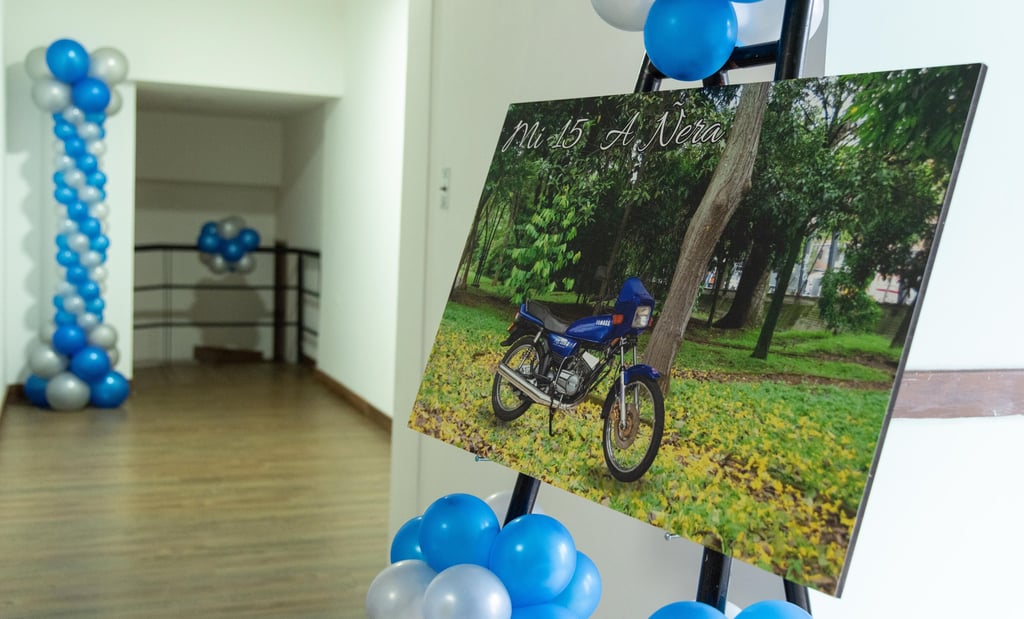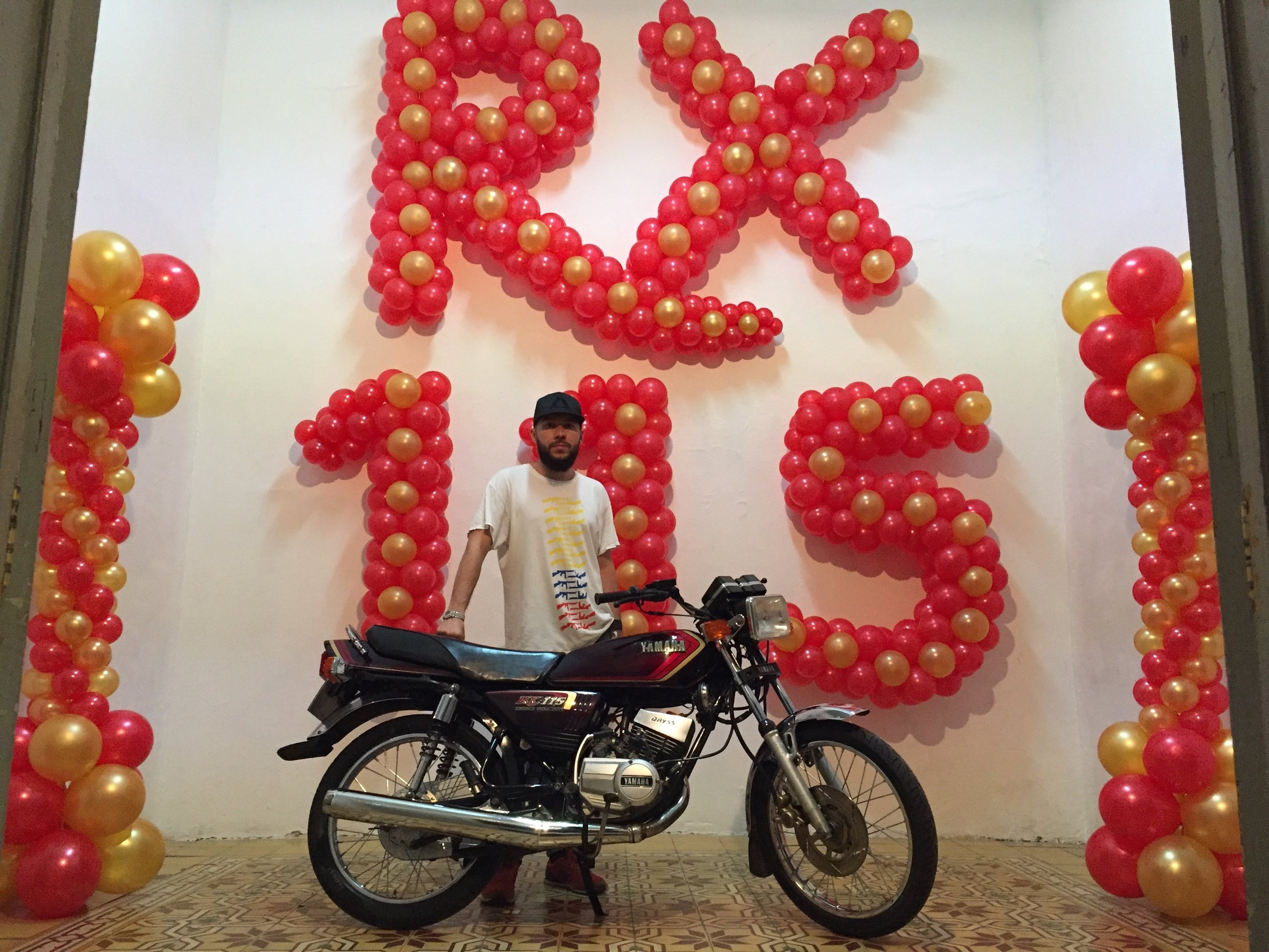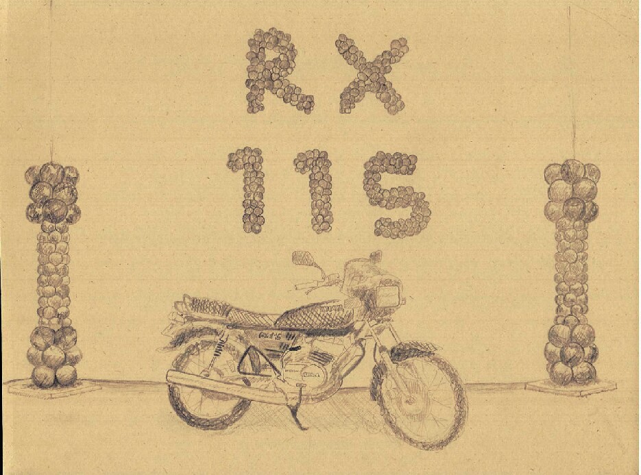 Con esta instalación planteo una lúdica entre las palabras -Quince, ñero. Una 15 a un ñero-, e interpreto las experiencias estéticas de cada individuo que posee esta motocicleta, cuyo nombre comercial es: Yamaha RX 115, pero conocida popularmente en los barrios como “la 15” , dado que verdaderamente cuidan, tratan y consienten este transporte como si fuese su novia; en definitiva, lo que planteo es un juego de conceptos que establezco con un buen humor, al celebrarle los quinceañeros a la 15 a ñera de un Ñero.