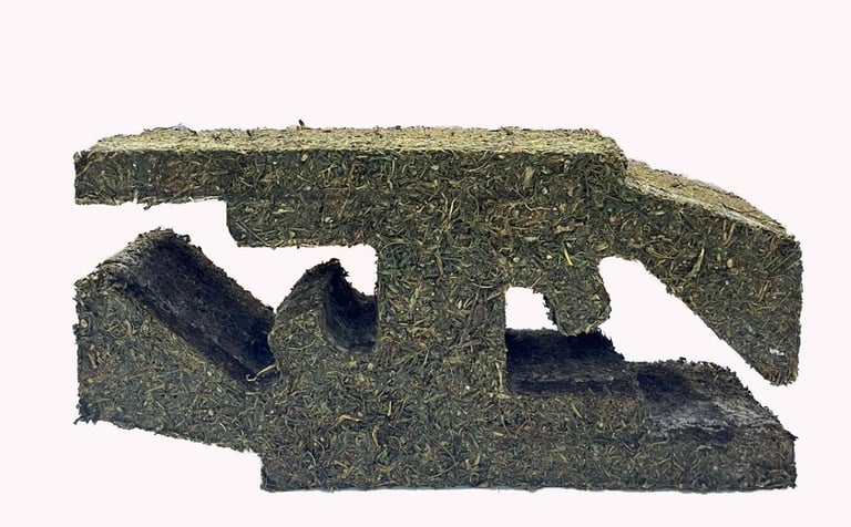 Bloque prensado de hojas secas de planta de marihuana y aglutinantes